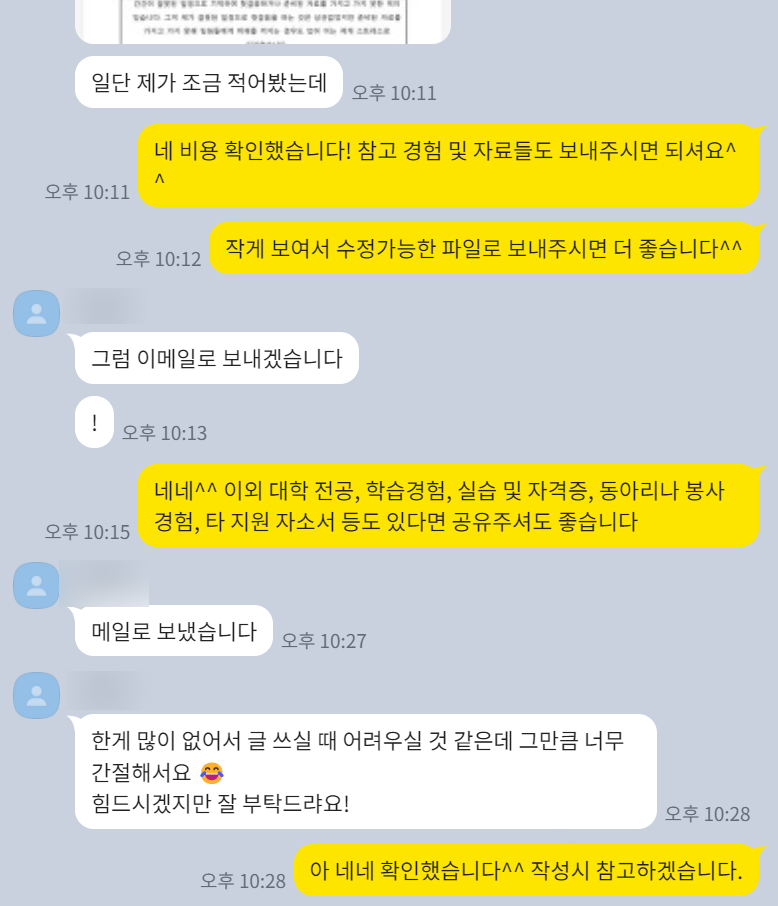 >> 자기소개서 1차 작성 및 첨삭/대필 ✍️