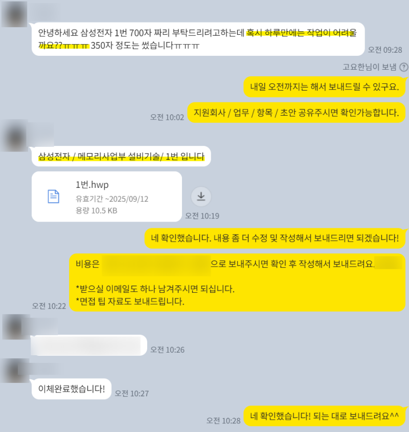 이번 지원자분께는 제가 직접 첨삭/대필하면서 얻은 노하우를 아낌없이 적용했어요! 📝