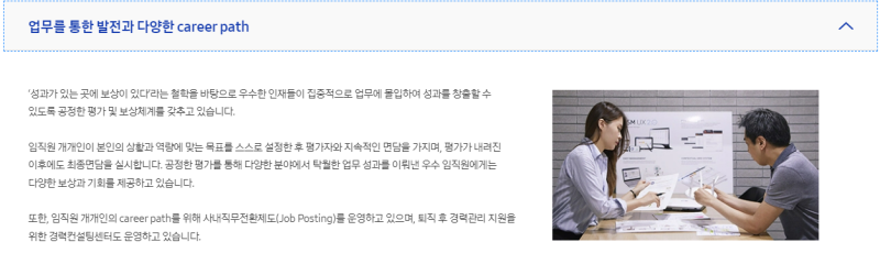 - * 인재상: 열정(Passion), 혁신(Innovation), 상생(Co-prosperity)을 추구하는 ‘창의적 인재’, ‘도전하는 인재’, ‘배려하는 인재’