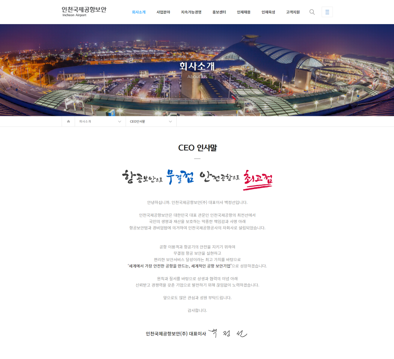 - ✅ 비전: 세계 최고 수준의 공항 보안 서비스를 제공하여 안전하고 편리한 공항 이용 환경 조성