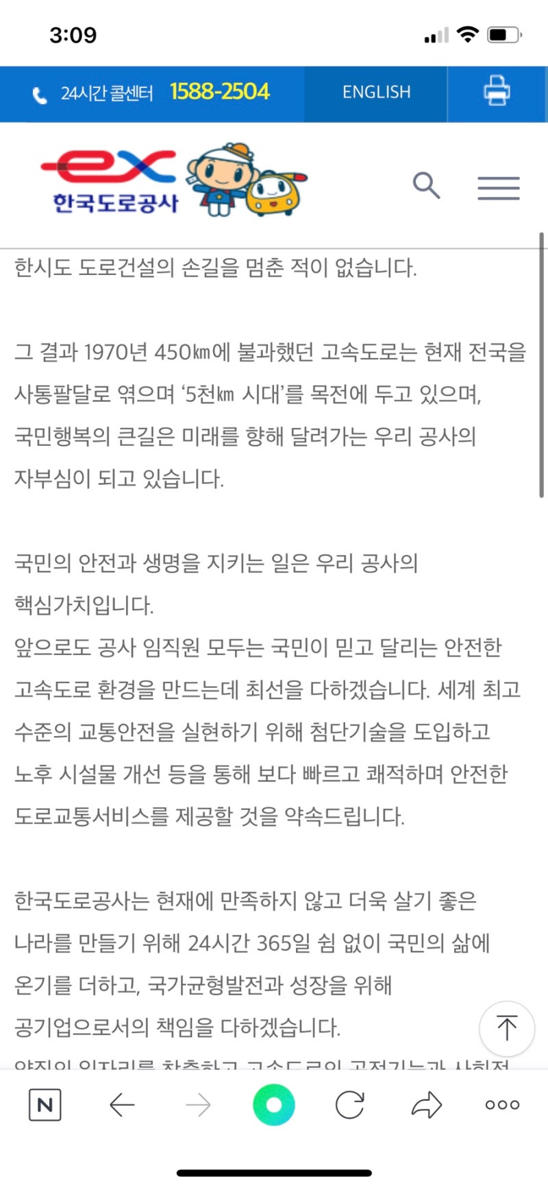 • 주요 사업: 고속도로 건설 및 관리, 스마트 하이웨이 구축, 자율주행 도로 인프라, 휴게소 서비스 개선, 교통안전 강화 등