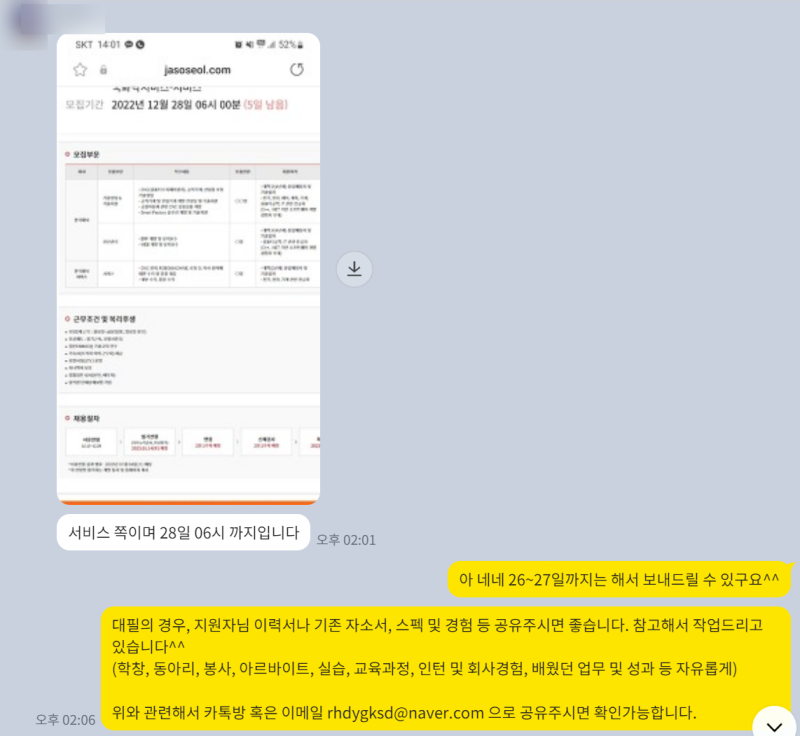 1:1 자소서 컨설팅 의뢰 과정