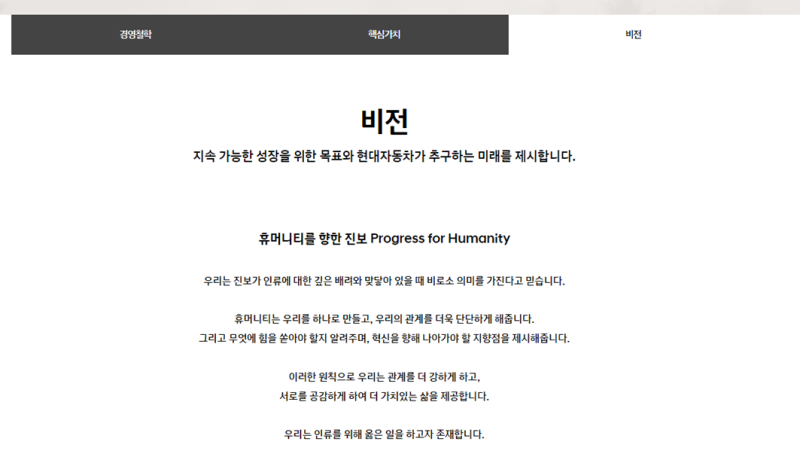 현대자동차 분석자료 (핵심가치,비전,인재상,각종 사업 등) 🔍