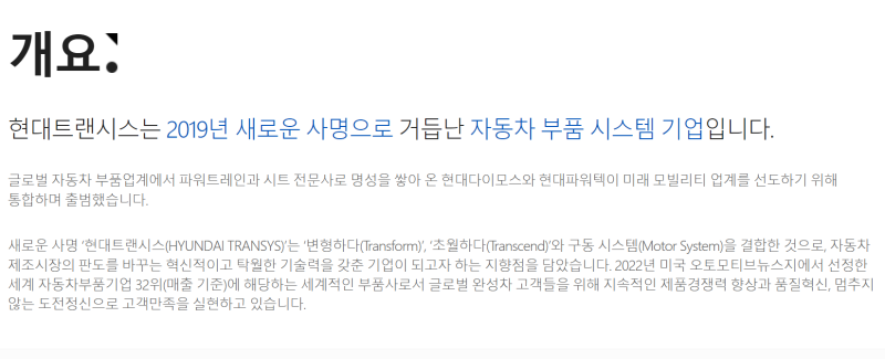 🔍 현대트랜시스 분석자료 (핵심가치, 비전, 인재상, 각종 사업 등)