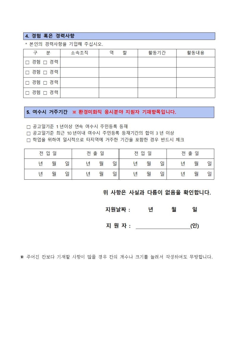 환경미화 공무직 자기소개서 문항