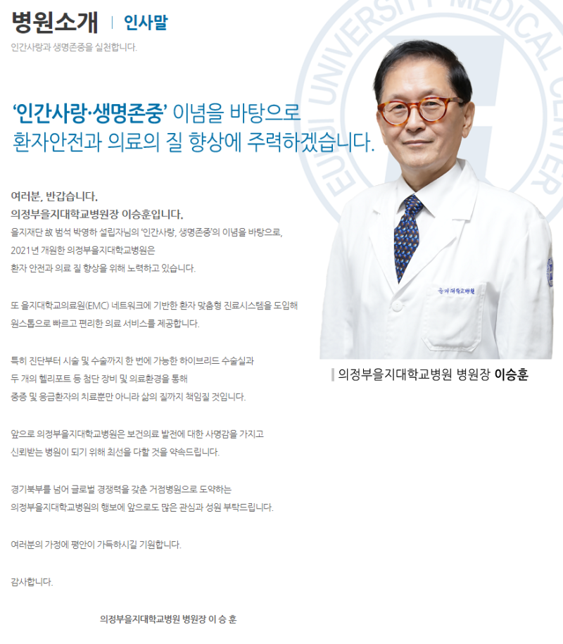을지대학교병원은 ‘인간사랑, 생명존중’이라는 설립 이념 아래, 최고의 의료 서비스를 제공하고 미래 의학을 선도하는 것을 비전으로 삼고 있어요. 핵심 가치로는 환자 중심, 소통과 협력, 혁신과 도전, 책임과 윤리를 강조한답니다. ✨