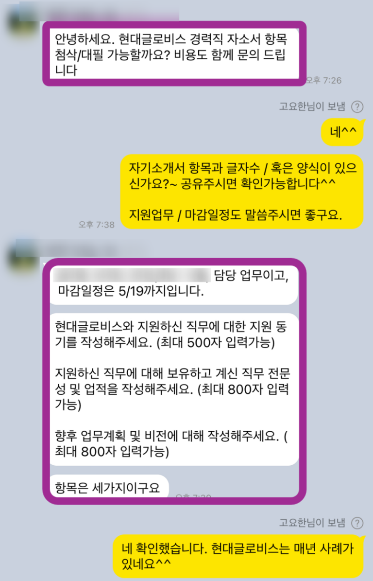 자소서 채용 자소서 작성법, 자기소개서 첨삭 대필 후기